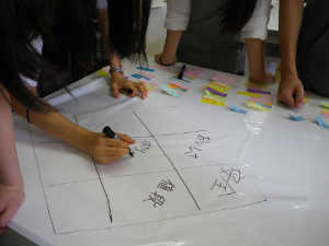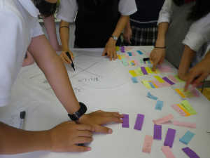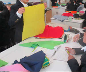 衣服のはたらきのひとつである個性の表現では、自分らしさの表現をカラーコーディネートで学びます。自分の好きな色と似あう色が同じなのかどうかをグループで話し合い、自分らしさについても考えます。