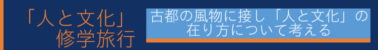 3年生の修学旅行では飛鳥・奈良・京都を訪れ、「人と文化」についての学習をしていきます。古代から政治文化の中心であったこの地の風物に接し、日本文化の伝統について理解を深め、現代に生きる者として未来に伝え形成していくべきものについて自分の考えや判断を持つことをめざしています。また、文化遺産について歴史的・風土的・美術的・文学的理解を深め、それらを尊重する態度と心情を持つこともねらいとしています。