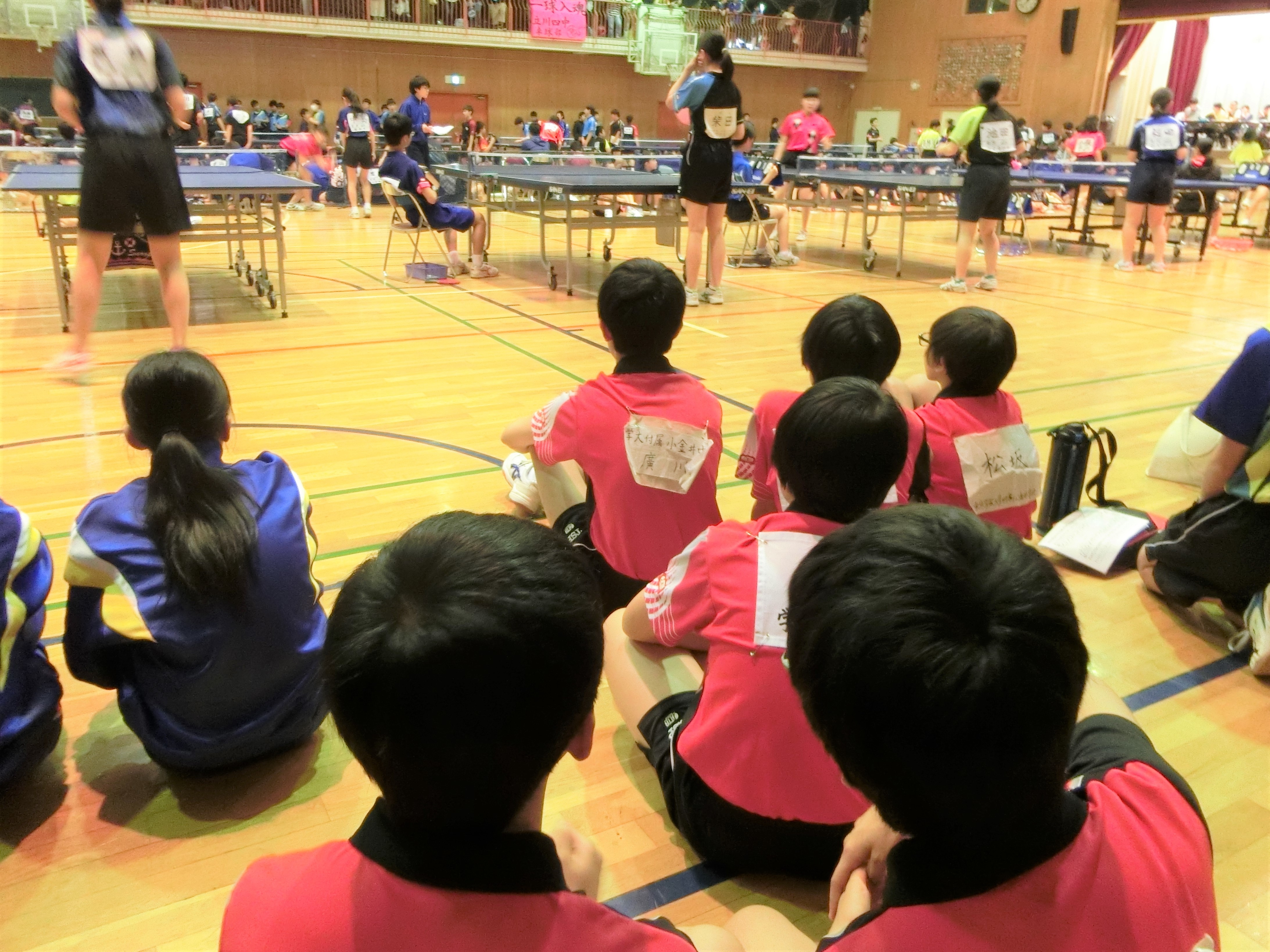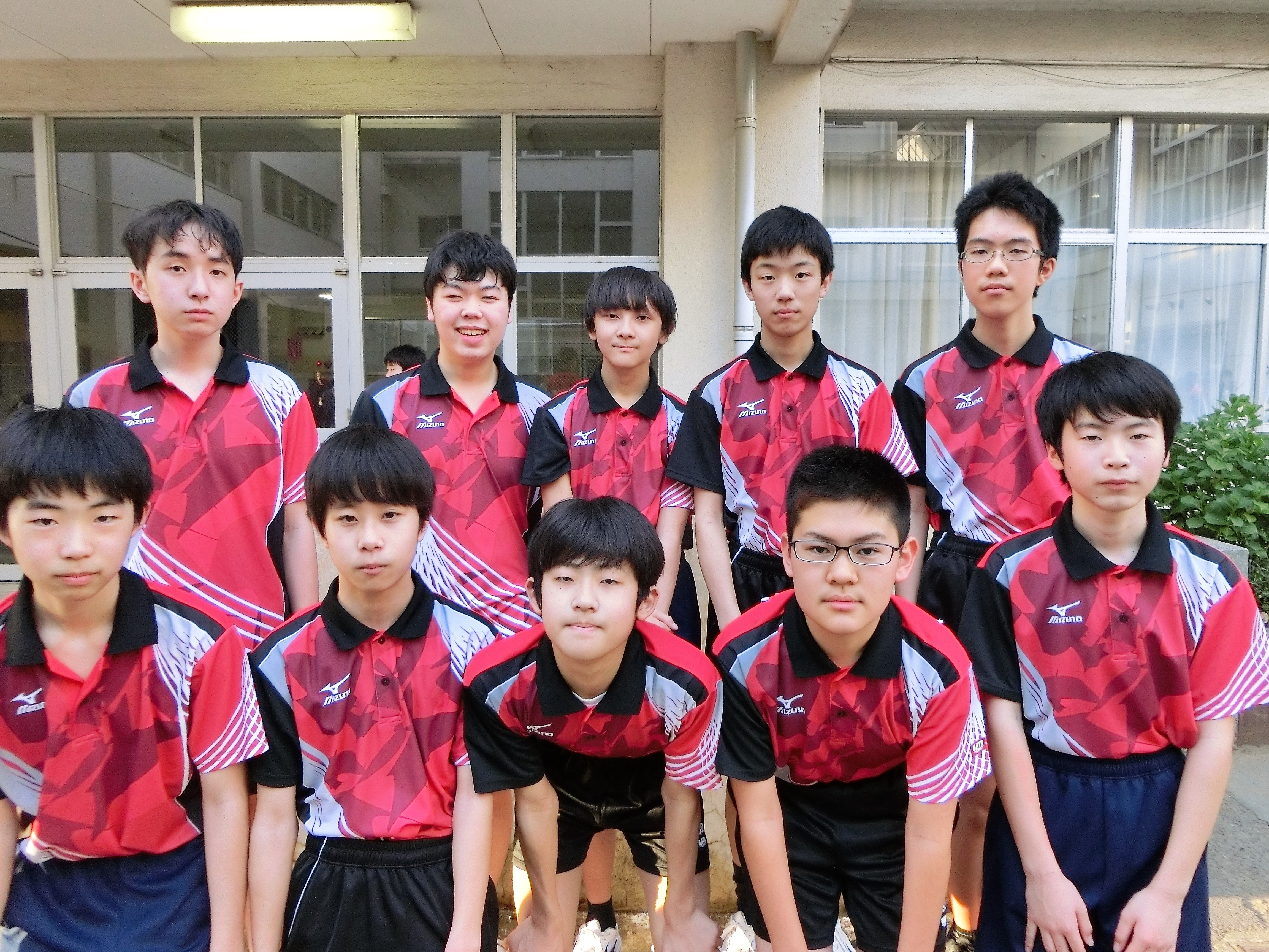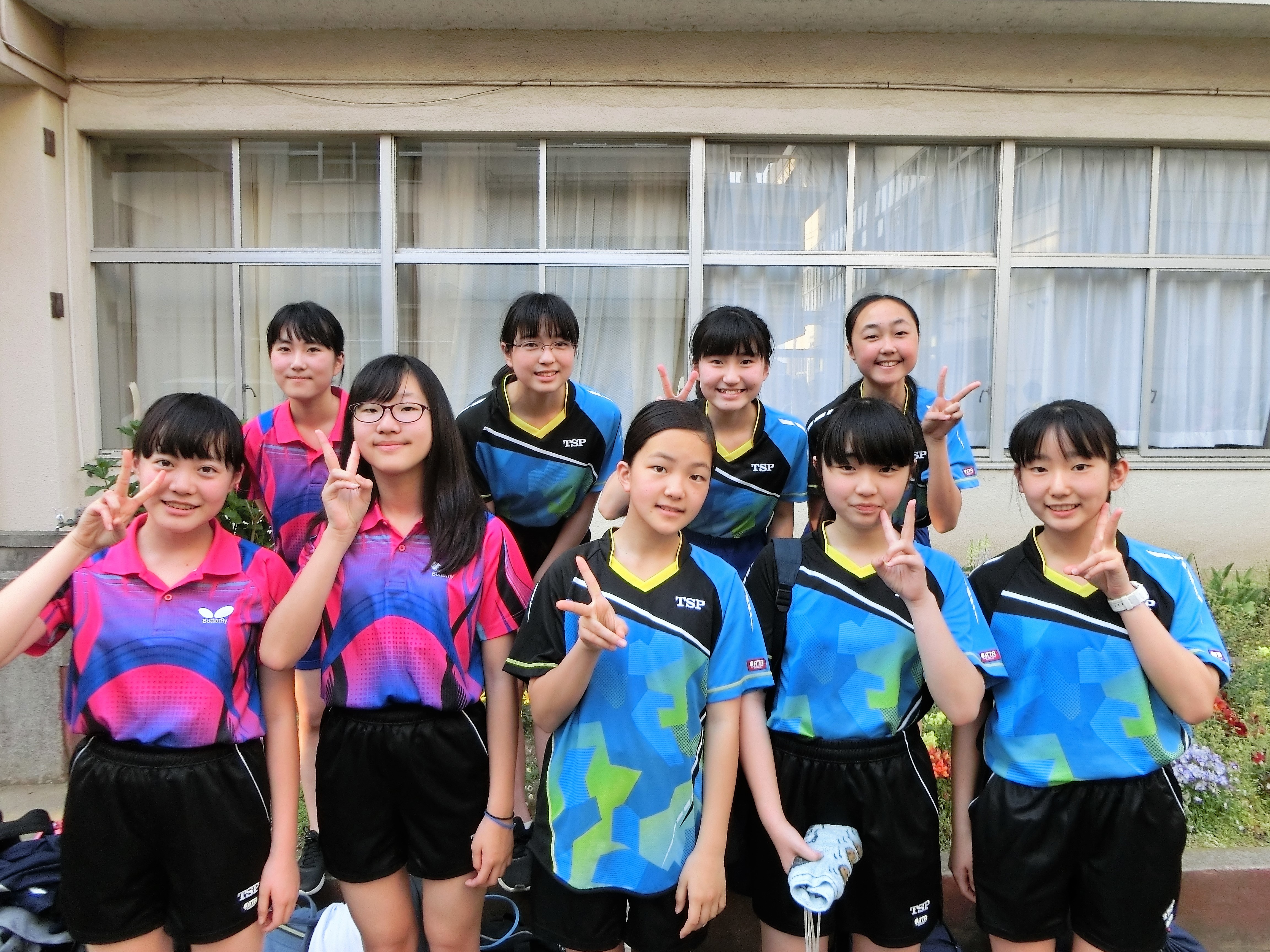 卓球部は、月・火・木・金曜日に武道場にて学年男女問わず和気あいあいと楽しく活動しています。50名以上の部員に対して卓球台は7台しかありませんが、全員でうまくシェアをしながら真面目に練習をしているので、最近、女子は都大会に出場するほどの実力になっています。誰もが、試合前には(高級な)「試合球」を使って練習ができるので、モチベーションが高まります。これからも、試合の度に上達している自分を感じられるように、日々活動していきたいです。