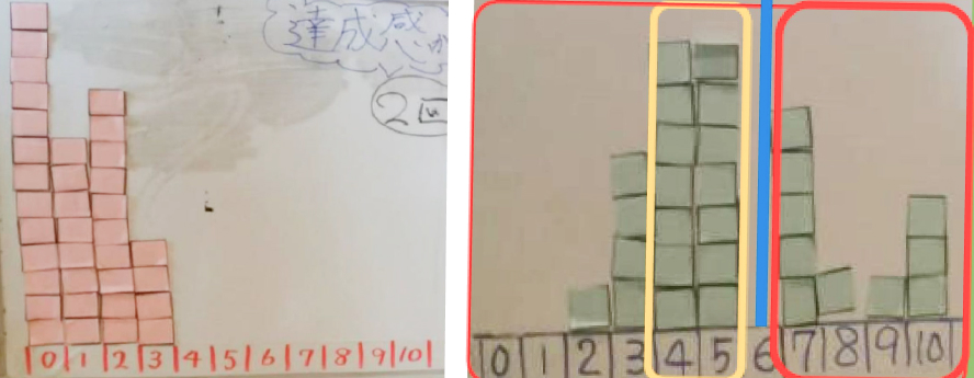 子どもたちの「1年生と6年生がともに楽しめる交流会を開きたい」という想いのもと、輪投げゲームの1年生のクリア基準をデータにもとづき決める。