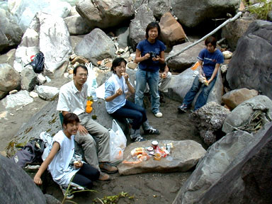 昼食は移動食となる事が多い。夏場の気温を考えると、どうしても、もって行けるものは限られている。だから、けっして豪華とは言えない食事だが、大自然の懐に抱かれて食べる食事は格別だ。自然のスパイスに勝るものなどない・・・はずだ。そう思わなければ、やってらんないからな。