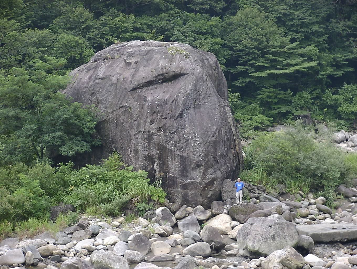 自然の力には驚かされます.よくもまあこんな物が流れるものだ.これで村一つ潰れたようで.写っている人は二年Sさん身長171CMくらい.