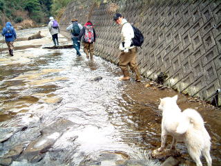 調査には,どこかの犬(かってにシロと名付けた)も参加!?した.なぜか後をついてくる??