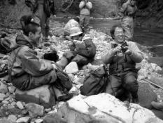 はじめにS井を乗せて川を下り,Sを置いてもとのところに戻る.そして院生Sさんを乗せてまたS井のところまで行くというピストン輸送をした.川の流れに任せて下るのは簡単であったが,逆に1人で帰るとき,のぼるのはたいへんであった.特に流れのはやいところ・・・(・・;)