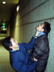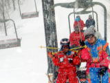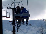 午後は,Nをゴンドラに乗せて頂上へ連れて行く・・・.はじめは,天気は上々であったが,午後から吹雪いてきた・・・.最強装備をして挑む.なべは疲れて頂上のスカイアークで休むことに・・・.その間,わたしはガンガン滑った.