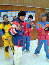 早速,すべり始める.本日スキー初体験のNちゃんの指導をした.「は」の字ですべるのは,けっこう難しそうであった.たくさん転んで,もうくたくたになってしまった模様・・・.足がプルプル震えていた・・・.白井も初めてであったが,ヤツは持ち前の能力ですぐにすべる事ができるようになっていた・・・.