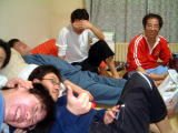 今日,驚いたこと.なべが普通にすべれるようになったこと.S井はスイスイすべっていた.先生に連れられ,裏山の林間コースをすべる.先生も30年目にしてスキーのコツをつかむことができたらしく上機嫌で滑っていた!!BとSは「ワン・エイティー」やほかの技を磨いていた.やりおる・・・.