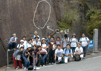 もともと、この岩壁に穴があるのは知られていましたが、それを恐竜の足跡化石であると証明したのが先生なのだそうです。まあ、これにまつわる話はいろいろとあるのですが、詳しい事は、現地に行くか松川先生に聞くかして調べましょう。