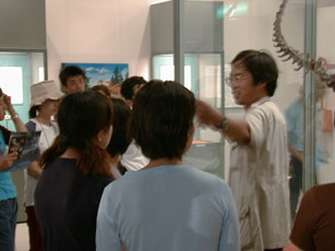 中里村には、恐竜センターという博物館があります。足跡化石の解説以外に、モンゴル産の生恐竜化石の展示や、食堂には「イグアノ丼」なるものまであり、マニアならずとも楽しめます。ここでは、古生物学的な内容のみではなく、研究の社会への還元のひとつの形というものにも注意しましょう。お土産には茸をどうぞ。