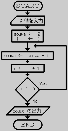 souwa = 1 + 2 + 3 + ¡¦¡¦¡¦¡¦ + n¡¡¤³¤ì¤ò¥¢¥ë¥´¥ê¥º¥à¤Ç¹Í¤¨¤ë¡£