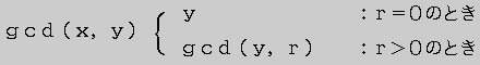 練習問題として、前々回練習問題として出しておいたユークリッドの互除法について再帰的なプログラムを組んでみてください。互除法の定義に関しては以下に転載しておきます。