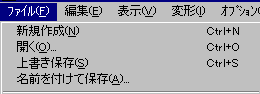 これらの機能を選ぶには、そこにカーソルを合わせるか、「Altキー」を押しながら(かっこ)内のアルファベットを押します(【編集】は「Alt」+「E」、【表示】は「Alt」+「V」、【変形】は「Alt」+「I」)。