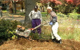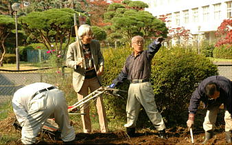 平成17年11月13日に掛川市の住民の方々のご協力により、自然科学系研究棟南側にあるヒマラヤスギ並木の樹下が耕耘機で耕され、そこに菜の花の種が蒔かれました。正門よりのヒマラヤスギ樹下には既に本学硬式野球部員らの協力によりムラサキハナナの種が蒔かれています。来春に咲きそろう紫と黄色の花が楽しみです。