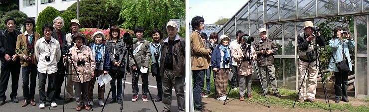 平成18年4月22日に府中野鳥クラブ会長の大室清さん、および坂井節三郎さんを解説者に招き、大学内で探鳥会を開催しました。当日は天気にも恵まれ、暖かな日差しの中9時から11時半頃まで学内を散策し、コゲラ、ツグミなど14種の鳥の生態を観察することができました。今回は初めての企画ということもあって、参加者は14名と若干少なめでしたが、学生、教職員に加え、大学近隣に居住する方々が参加し、野鳥観察を通じて大学内外の交流も深まりました。参加者はいずれも探鳥会は初めての体験者ばかりでしたが、「解説が面白い」、「双眼鏡や望遠鏡で見る鳥は迫力がある」、「鳥だけでなく植物の話も聞けてよかった」など好評を博しました。 |