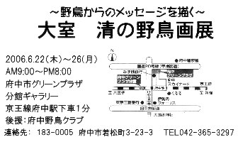 今回、野鳥観察の指導をしていただいた大室清さんは、多数の野鳥画を描かれていますが、近々にその個展が開催されます。