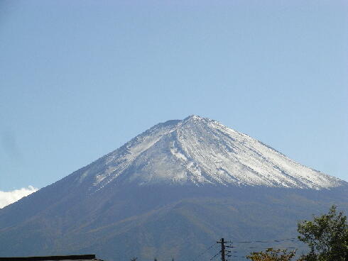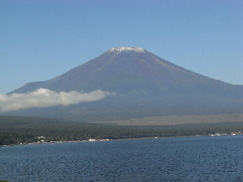 | 10月1日、富士吉田市役所は初雪化粧宣言を出した。その翌日、山中湖から。 |
