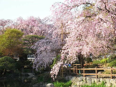 | 富安風生が「まさをなる そらより しだれさくらかな」と詠んだ伏姫桜。市川、真間山弘法寺境内にて。 |