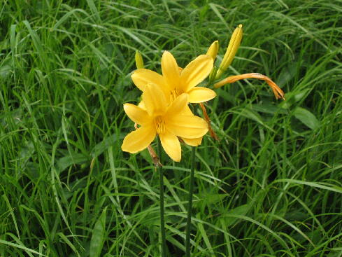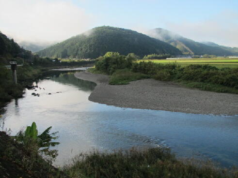 | 信州の夏に咲く桔梗。しなの鉄道「信濃追分駅」の無人ホーム端にて。8月3日午前6時半。 |