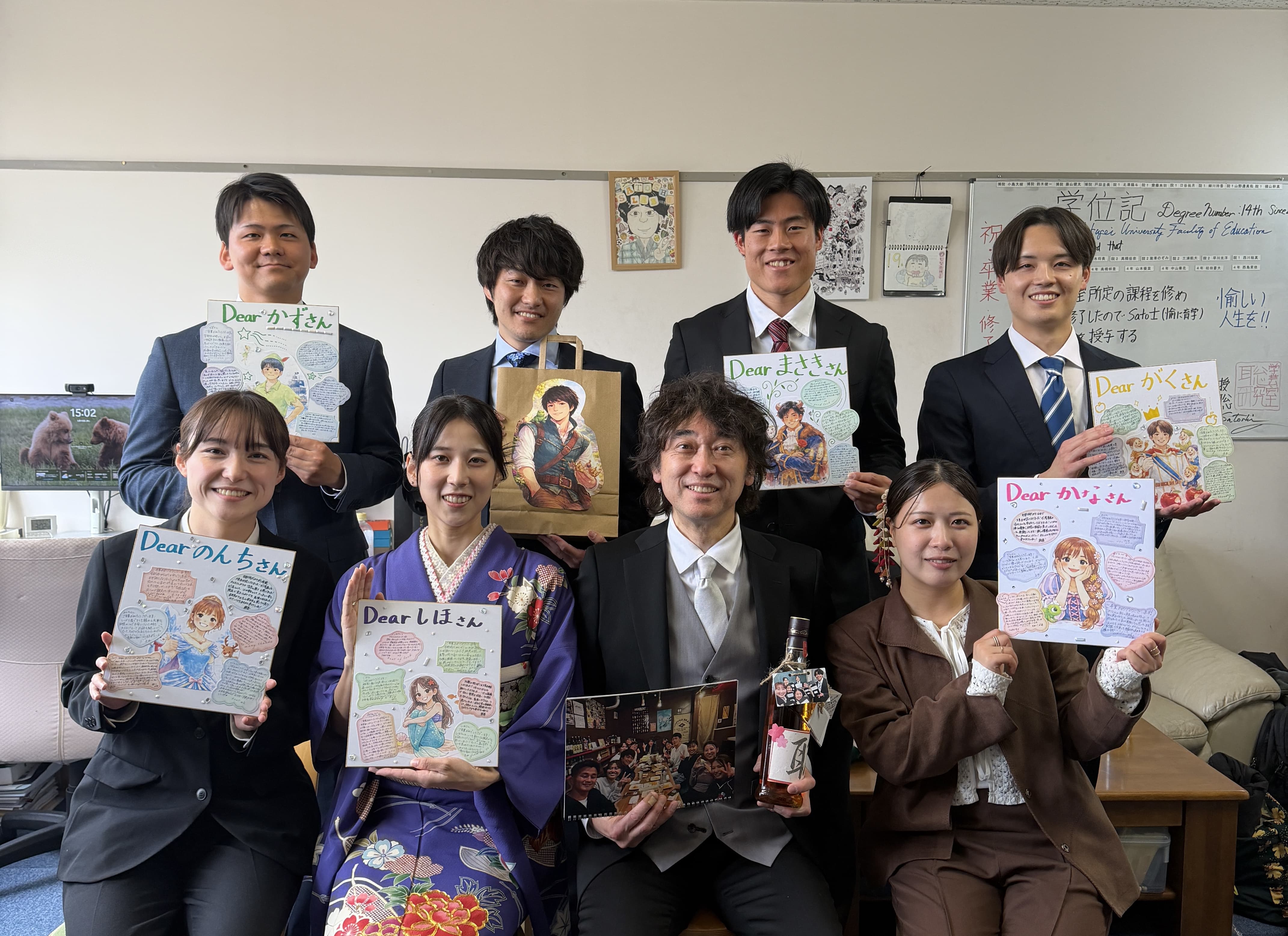 今年も8名の4年ゼミ生が研究室を巣立ちました。卒論がとても面白く、しっかりと仕上がっています。学大での学びをこれからに生かしてください。おめでとうございます。応援しています!