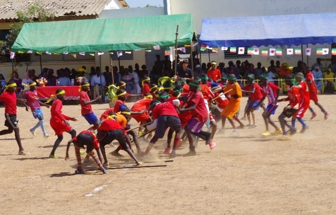 騎馬戦(6年生)実は今、セネガルには運動会ブームが来ています(笑) 2月に教育系ボランティアの活動を広める目的で、全国規模の教育イベントをティエス市内で行ったのですが、そのイベントのプログラムの1つとして先輩のボランティア隊員が「UNDOKAI」を実施しました。それを見た全国から集まった教員や視学官の方々から「うちの学校でもぜひUNDOKAIを!」との声が上がり、今、多くの地域で(主にボランティアが入っている学校で)運動会が企画・実施されているというわけなのです。わたしも、普段体育をやらない先生たちと体育を始めるきっかけになると思って、運動会の実施を提案しました。
