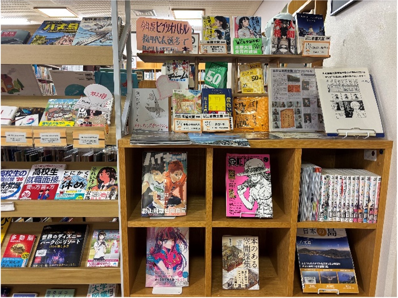 漫画を借りていくことをきっかけに図書館の利用が日常的になり学習や進路の本を借りることへ繋がっていく生徒もいます。高校生たちが自分の住む島が好きな作品に登場するという楽しさを味わう体験を通じて読書の魅力と島の魅力を知ることができる環境を作っています。