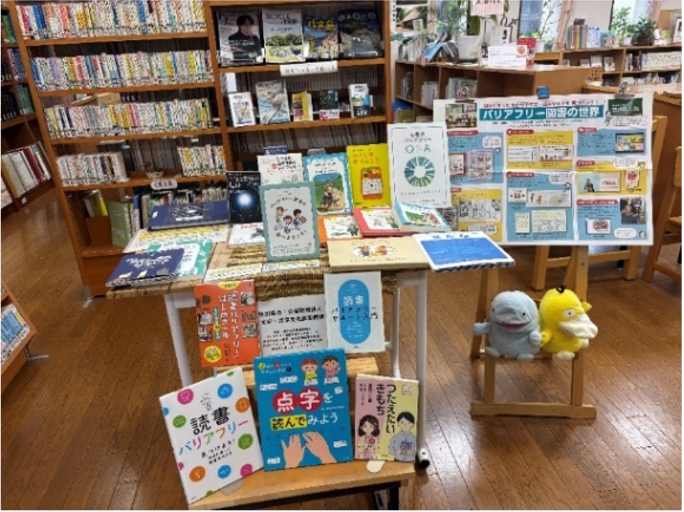2025年6月には読書バリアフリー体験セットを展示し実際に利用してもらいました。図書を通じて多くのことを体感し考えるきっかけを図書室から取り組んでいます。