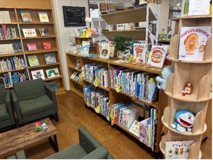 図書館の面積は限られた小さなスペースですが、最大限に活用できるよう考え広々と使えるようにレイアウトを工夫しています。