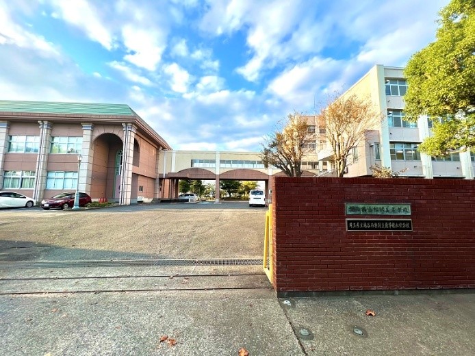 普通科のほかに普通科情報ビジネスコース、音楽科があり、2学科1コースが設置されています。町内では唯一の高校で、学級数は1学年が6学級、2・3学年は各5学級で、計16学級。生徒数は約500人です。