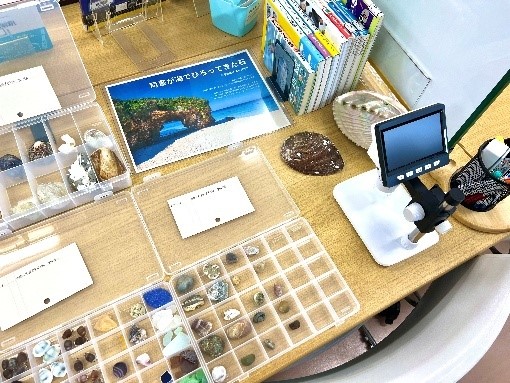 最近は司書が海岸で拾ってきた石なんかも飾ってあり、たまにそういうのが好きな生徒が反応してくれます。