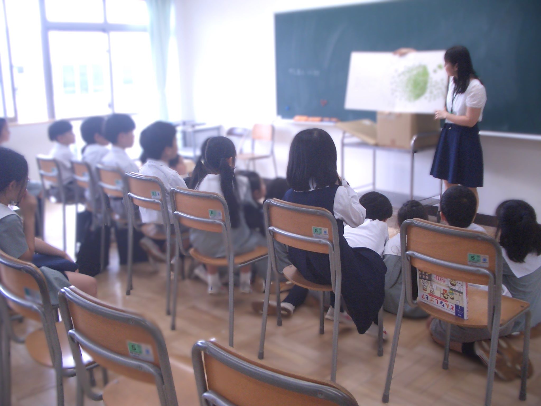 今年度、司書教諭の西岡先生が2年生と3年生の図書の時間を受け持っていて、授業の導入で分類について話をしました。NDCの歌を歌って分類を身近に感じてもらったり、子どもたちの借りた本は何類かみんなで共有したり、分類ごとに書架にある本を紹介したりしました。