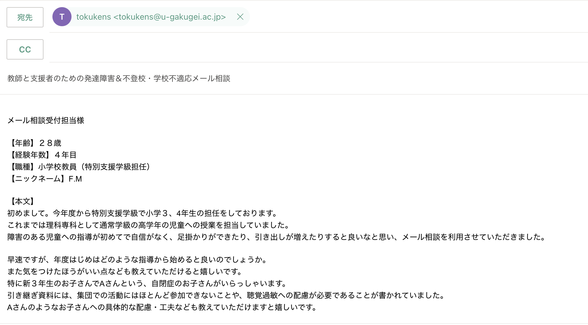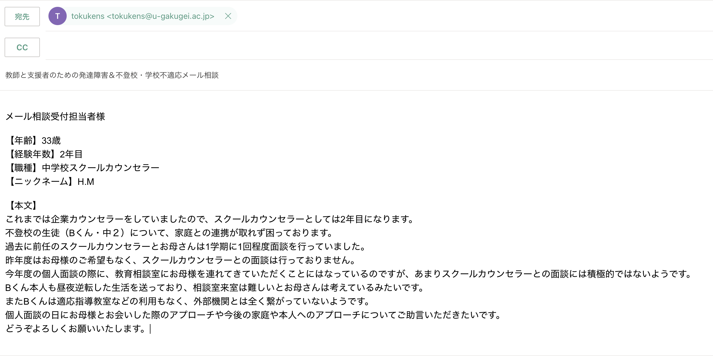 ◯件名 教師と支援者のための発達障害&不登校・学校不適応メール相談