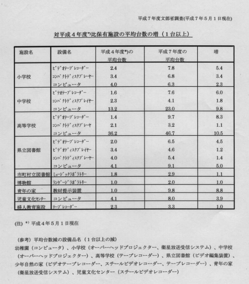 学校及び社会教育施設における視聴覚教育設備の状況調査(抜粋)