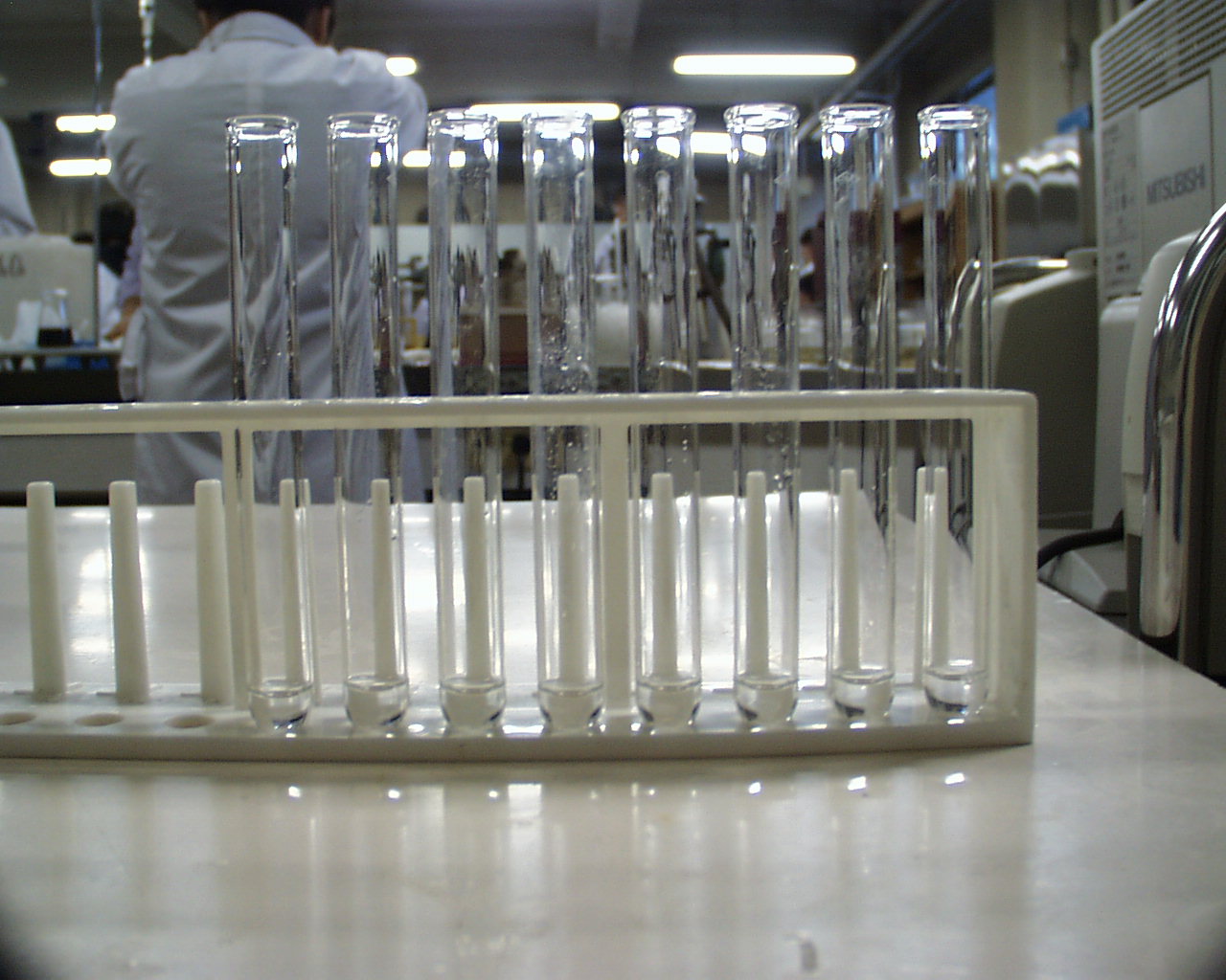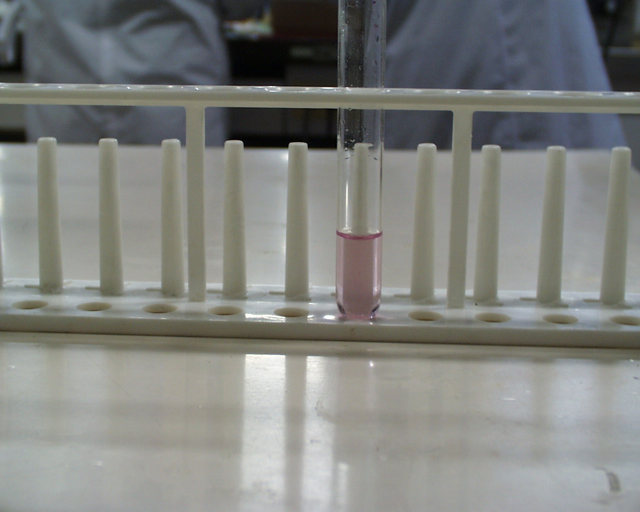反応停止液の入った試験管の中へ静かにゆっくりと入れる。