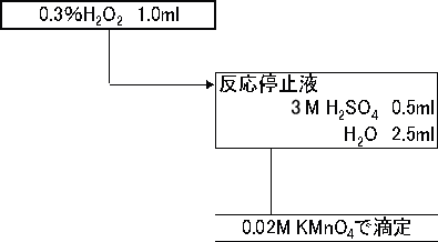 反応停止液に入れた1.0 mLの過酸化水素水は過マンガン酸カリウムで滴定する。