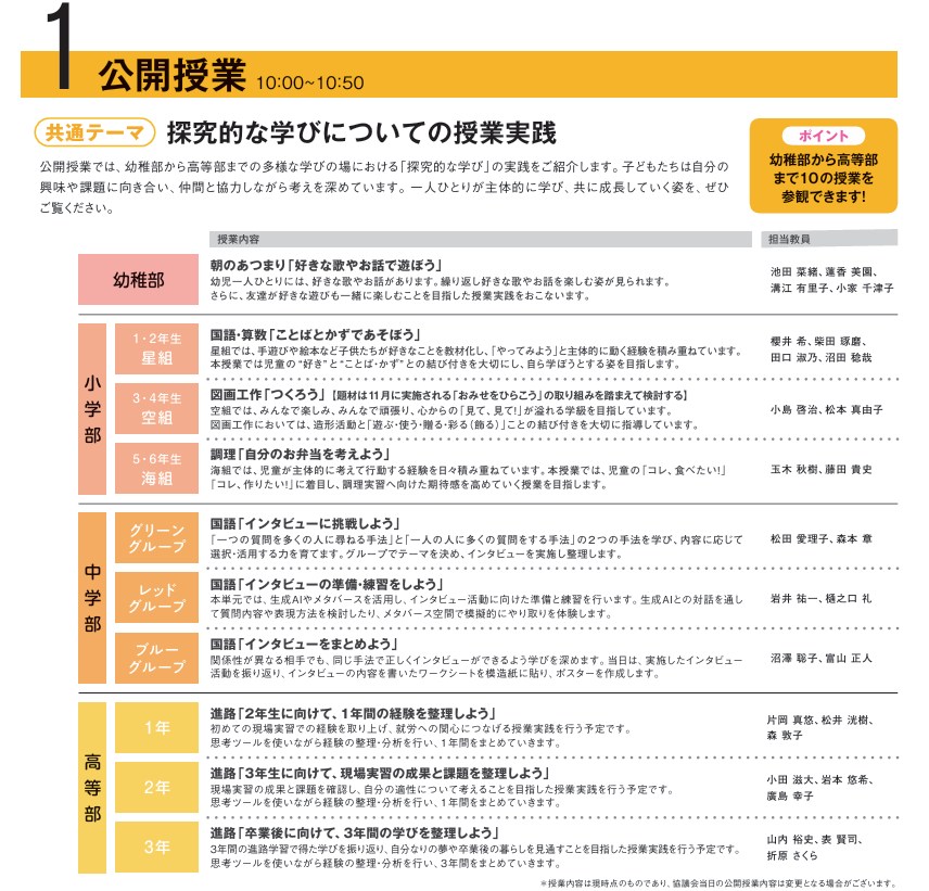 【研究協議会】10の授業がみられる公開授業