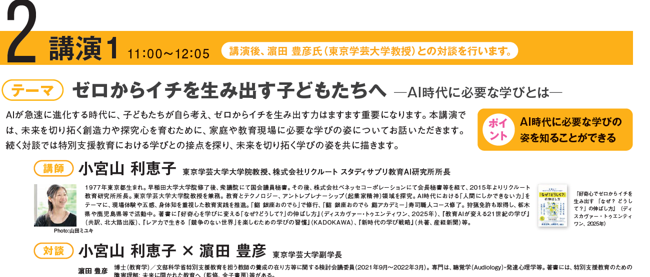 テーマは、「ゼロからイチを生み出す子どもたちへ ─ AI時代に必要な学びとは ─」となっており、